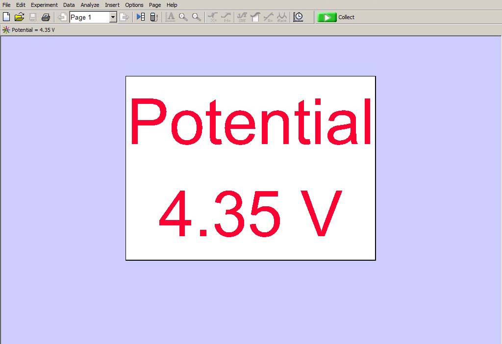 Connect a voltage sensor to LabQuest CH 1. Open voltage1display.cmbl in Logger Pro.